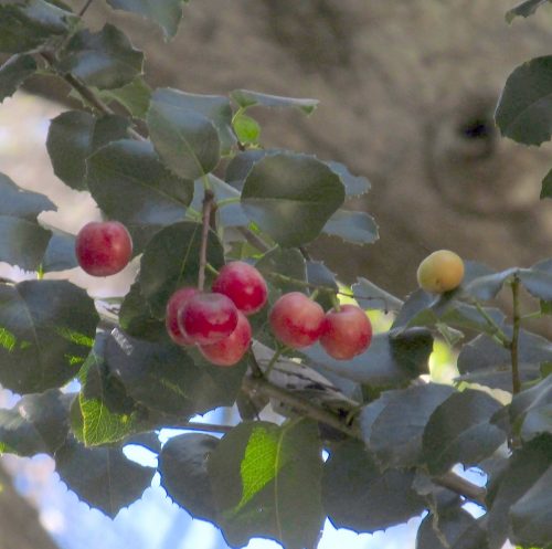 Prunus lyonii – Catalina cherry. Small to medium tree that can be hedged and is often used as privacy divider between houses.